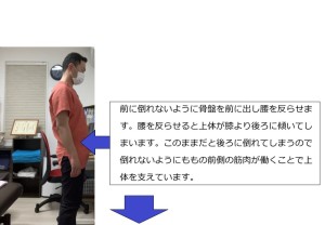 つまり、耳と肩の位置がずれることにより重心をとろうと腰が反ってしまっているからです!