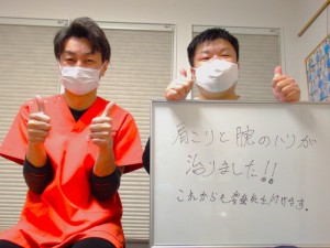 「数回の施術で右肩の痛みがとれた!」 1.今までにどのような症状に悩んでおられましたか?それはいつからですか? 数年間肩のこり、1年ほど前から右肩の痛み 2.その痛みを取るために今までにどのようなことをされてきましたか?また、それはどんな効果がありましたか? マッサージ、その時だけは良くなった 3.何が決め手となり、当院で施術されようとおもったのですか? インターネット検索、SNS検索 4.私の施術と今までの施術はどのようなところが違いましたか? 根本的な原因を教えてくれたのと、他のところと施術するポイントが全然違う 5.どのような方に当院をすすめたいですか?また、同じような悩みを抱えている方へメッセージをください。 必ず良くなります (野口様) ※効果には個人差があります