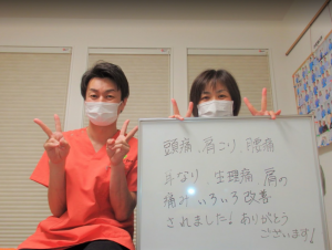 1.今までにどのような痛み、痺れに悩んでおられましたか?それはいつからですか? 両肩の痛み、頭痛を3年ほど抱えていた 2.その痛みをとるために今までどのような施術をされてきましたか? 整形外科で注射を週に1回、両肩に打った。 3.その施術はどんな効果がありましたか? 効果はなかった。 4.何が決め手となり、当院で施術されようとおもったのですか? 今迄に受けた事がない施術法だったので、自分に合えば良くなるのではないかと思った。 5.私の施術と今までの施術はどのようなところが違いましたか? 施術を受ける毎に体が楽になっていく事と、家でのストレッチを教えてもらい、自分でも出来る事 6.どのような方に当院をすすめたいですか? 同年代の身体に不調を感じている方 7.同じような悩みを抱えている方へメッセージをください。 病院でも良くならない様な痛み・不調も快調になります。 (松本様) ※効果には個人差があります |