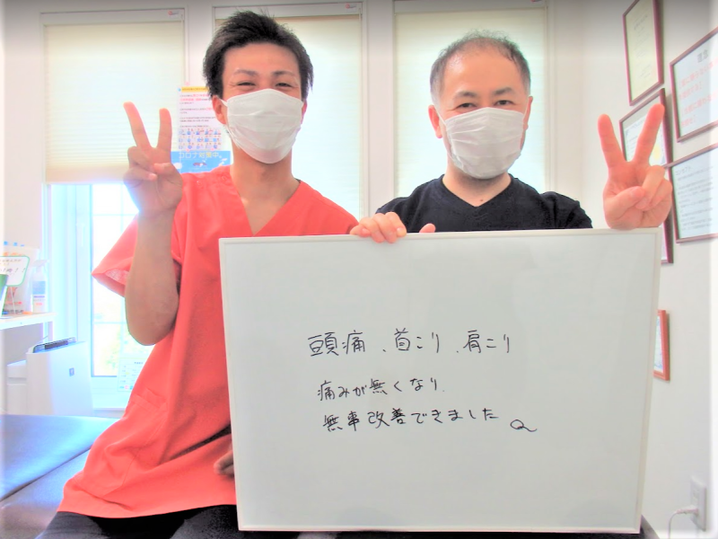1.今までにどのような症状に悩んでおられましたか?それはいつからですか? 小学生のころからの頭痛で悩んでいました 2.その症状をとるために今までどのようなことをされてきましたか? 病院の薬を飲んでいるだけで他には特に何もやっていませんでした 3.その症状に対してはどんな効果がありましたか? 薬を飲んで数時間は痛みが良くなるけど、作用が切れると痛みが出てきてしまう状態 4.何が決め手となり、当院で施術されようとおもったのですか? なかなか薬では完全に良くならないし、出来るだけ薬に頼りたくないと思っていたので 5.私の施術と今までの施術はどのようなところが違いましたか? 一切薬を使わない、ストレッチの方法を教えてくれる 6.どのような方に当院をすすめたいですか? 頭痛で困っている人 7.同じような悩みを抱えている方へメッセージをください。 薬がなくても頭痛は治ります!諦めないでください! (K.T様) ※効果には個人差があります |